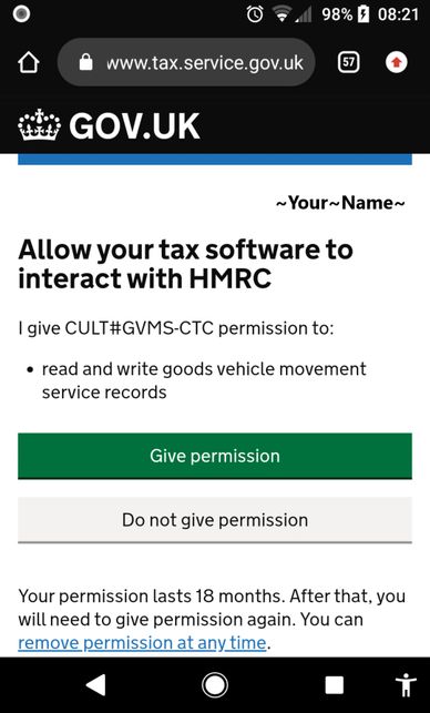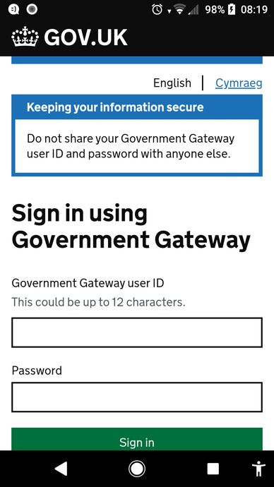 Your first request for a protected service will require logging on to the Government Gateway and requesting the service. The standard HMRC login and grant pages are presented to the user.